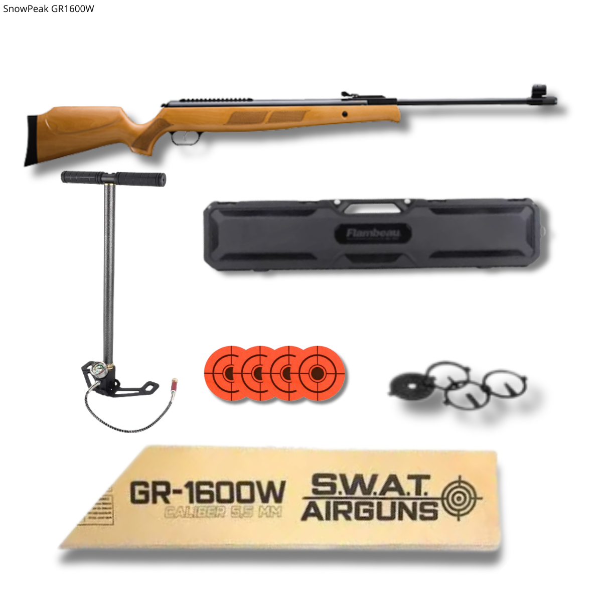 El SnowPeak GR1600W es un rifle de aire comprimido con mecanismo de quiebre (break barrel) que combina potencia extrema, diseño clásico y tecnología moderna. Reconocido como el rifle de quiebre más rápido del mundo, alcanza hasta 1000 fps en calibre 5.5 mm, ideal para caza menor, tiro a larga distancia y control de plagas.